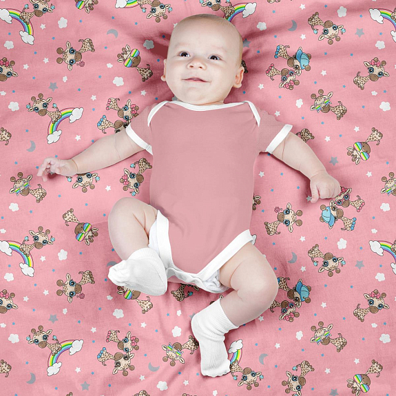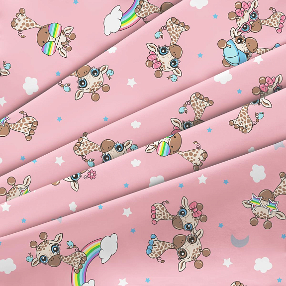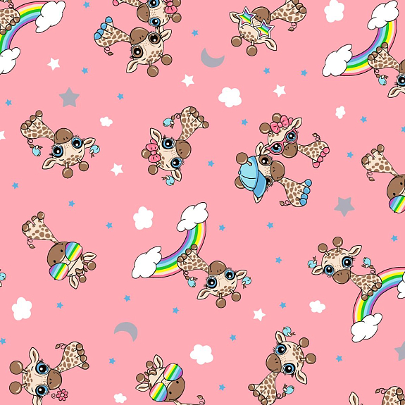 Фланель 90 см наб 64024-4 Радужные жирафики розовый