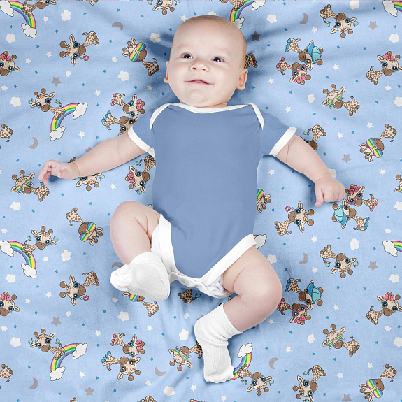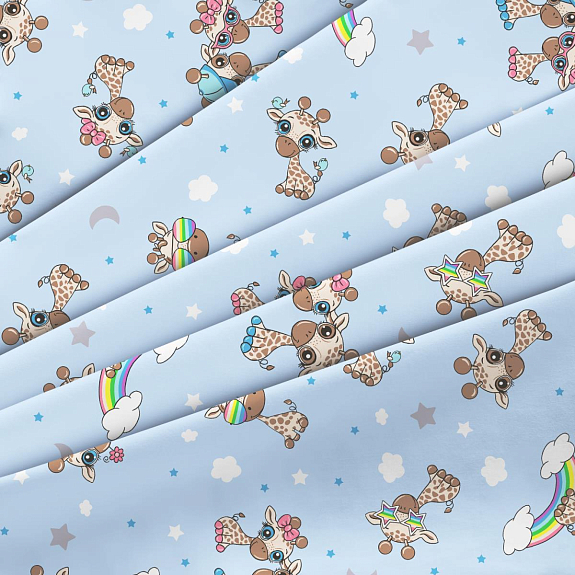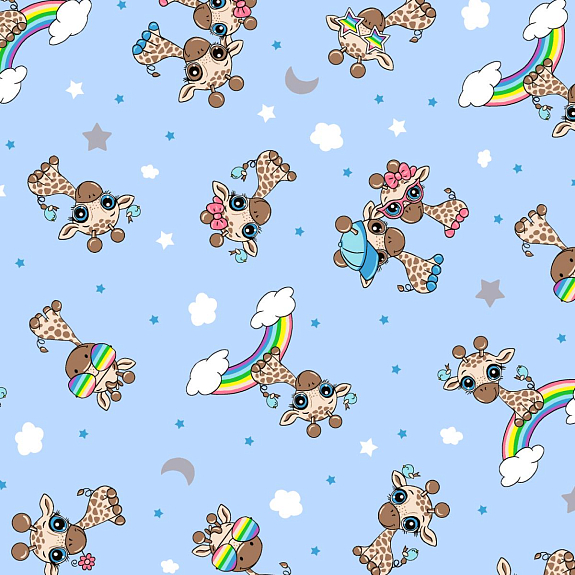 Фланель 90 см наб 64024-6 Радужные жирафики голубой