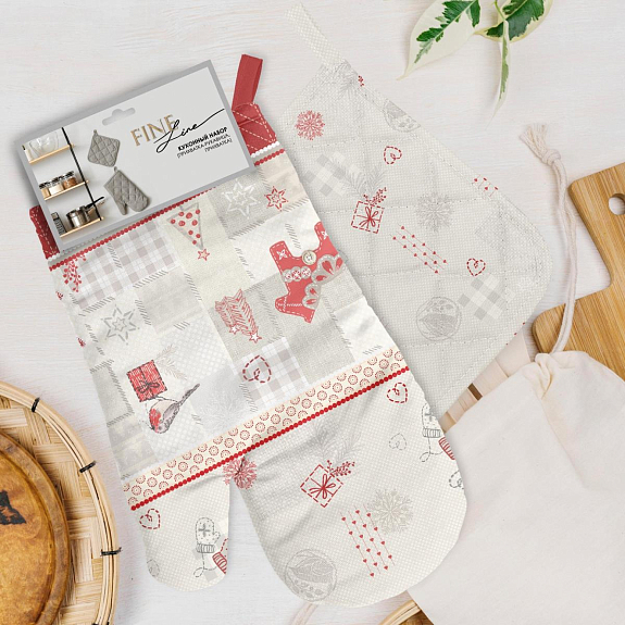 Оставьте свой отзыв о товаре Комплект кухонный (прихватка, рукавица) рогожка Floox 40001-1 Пряничные домики