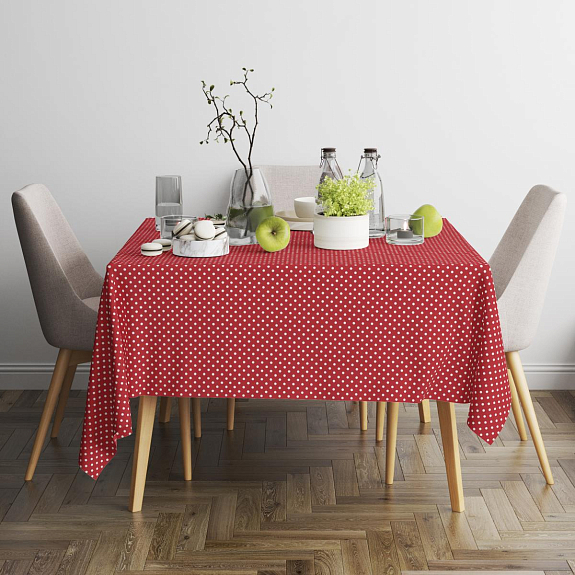 Скатерть рогожка Fine Line 62064-1 Белый горох на красном
