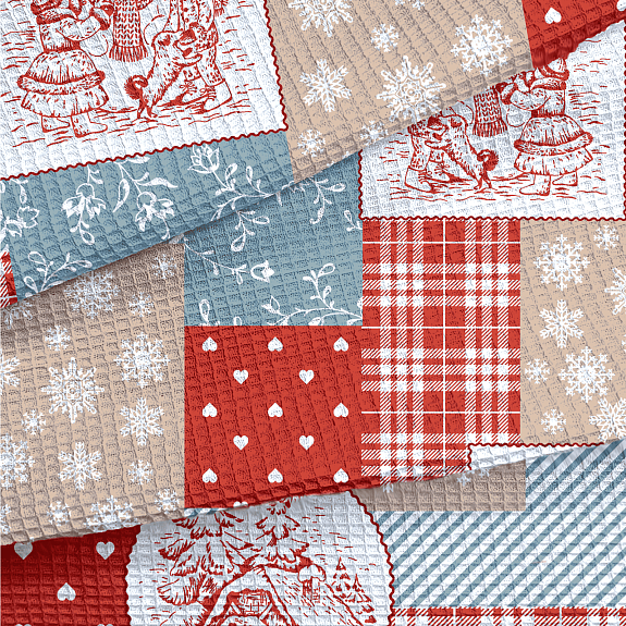 Полотно вафельное 150 см наб 29393-1 Новогодний пэчворк